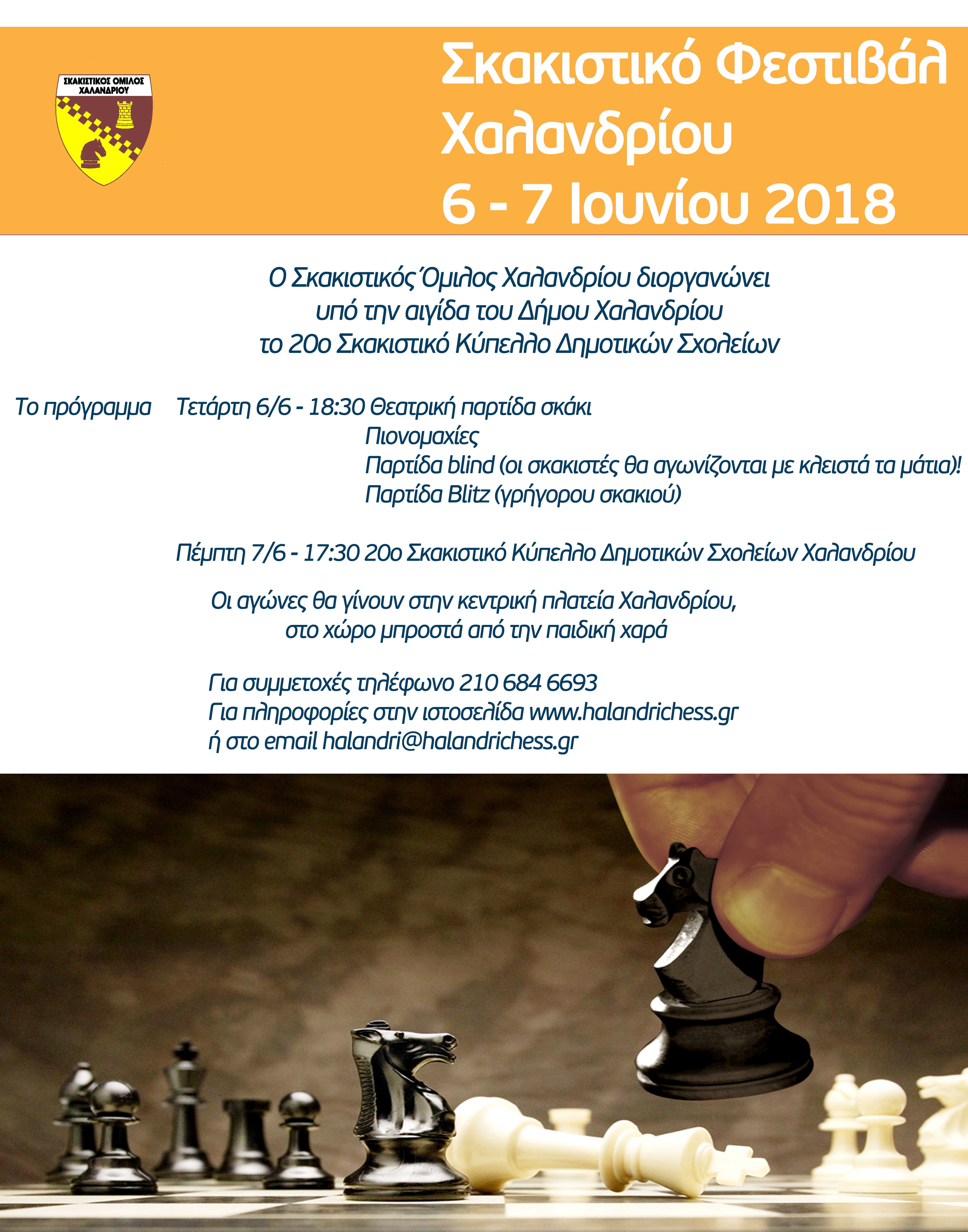 Ο Σκακιστικός Όμιλος Χαλανδρίου και ο Δήμος Χαλανδρίου προκηρύσσουν το