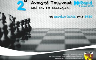Δευτέρα 21 Νοεμβρίου 2022 Διοργανωτής: Σκακιστικός Όμιλος Χαλανδρίου Διευθύντρια αγώνων: Μαρία Τραγέλλη (FIDE ID: 42145830) [...]