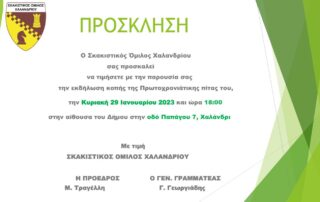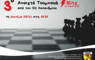 Δευτέρα 28 Νοεμβρίου 2022 Διοργανωτής: Σκακιστικός Όμιλος Χαλανδρίου Διευθύντρια αγώνων: Μαρία Τραγέλλη (FIDE ID: 42145830) [...]